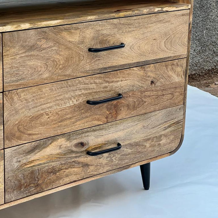 La collection de chambre à coucher Le Vallon est une expression remarquable de l'élégance contemporaine et de la fonctionnalité ingénieuse. Conçue par des professionnels avec un souci du détail inégalé, cette collection incarne l'harmonie entre forme et fonction. Fabriquée à partir de bois massif de manguier, elle offre une allure naturelle et authentique qui apporte chaleur et caractère à tout espace. Ce qui distingue cette collection, c'est sa conception novatrice mettant en valeur la rondeur des angles. Cette caractéristique confère à chaque pièce une esthétique moderne et futuriste, créant ainsi un impact visuel saisissant.