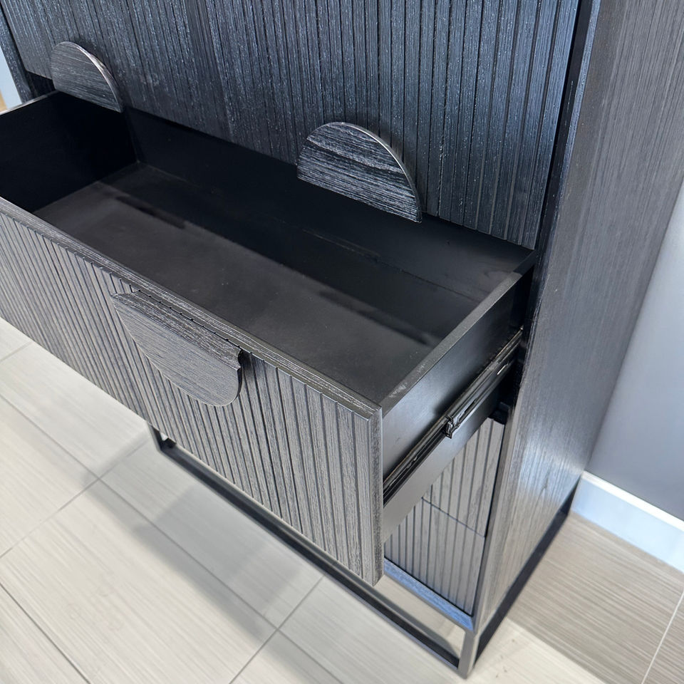 Plongez dans l'élégance contemporaine avec la collection Teca, où le noir sophistiqué rencontre la qualité supérieure du bois de frêne. Chaque pièce de cette collection incarne un équilibre parfait entre style et durabilité. Les poignées en cercle unique apportent une esthétique distinctive, tandis que le bois brossé et le design ligné à l'avant ajoutent une texture et une dimension supplémentaires à chaque meuble. C'est la collection noire parfaite pour ceux qui recherchent un style intemporel et une qualité exceptionnelle.